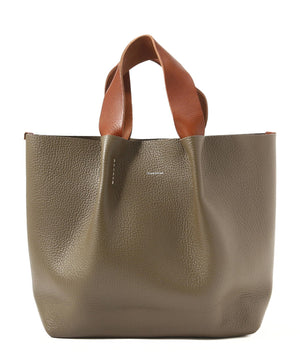 持ち手は約3.0cmほどの厚みがあり、張りのある弾力と自然なシボ感が特徴の