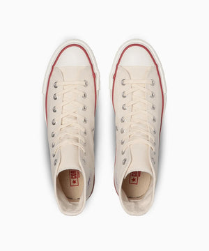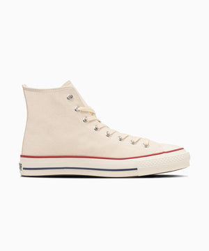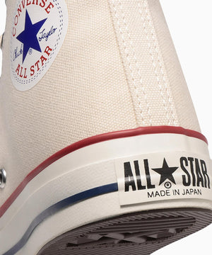 キャンバスオールスターとは異なる生成りテープ、コットンシューレースを使用。ヒールラベルの下部分に「MADE IN JAPAN」を印字。ホワイトのキャンバスに赤字で印されたインソールのコンバースロゴは、日本の国旗をイメージ。 オリジナルカートンボックス仕様。