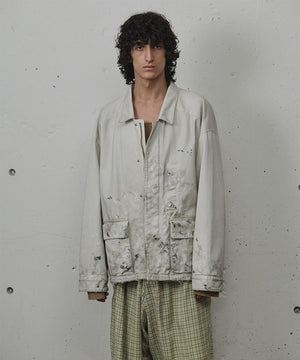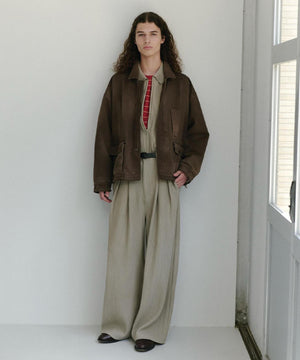 ミリタリーやワークを由来とするドリルに、数多の年数を超えたような経年変化をデザインしました。染めから色を落とし、再び載せて、と工程を繰り返し、BROWN、BLACKではフェードによるグラデーションの美しさを、OFFでは何層にも塗料を重ねた汚しによって迫力を表現。