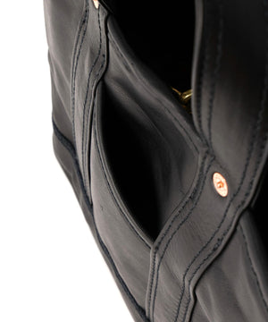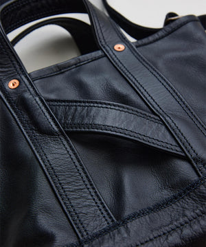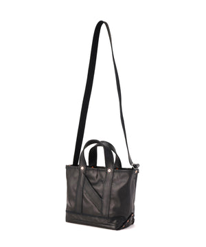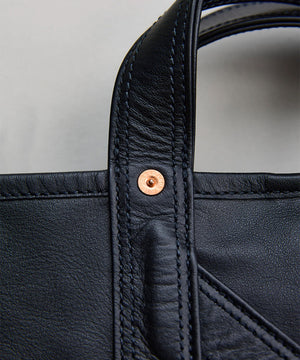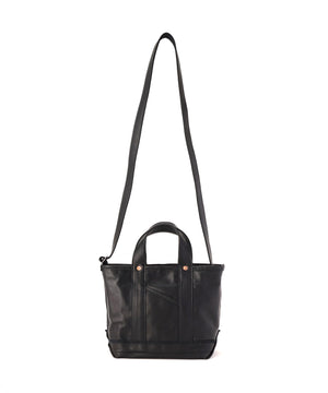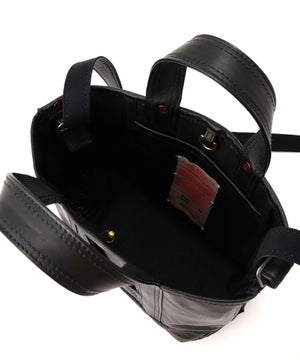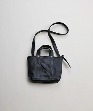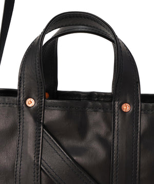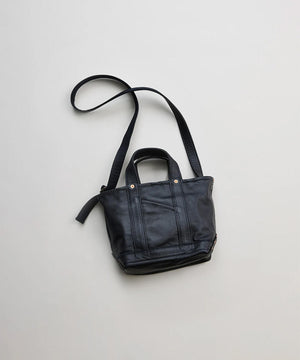 1920〜50年代のアメリカに実在したツールバッグをベースに再構築した、NNオリジナルの小型ショルダートート。素材は無骨で表情豊かなホースレザーを採用することで、道具としての強さと品格を併せ持つ仕上がりに。コンパクトながらマチの折り込みをリベットで補強した構造や立体的な設計で収納力を確保し、ハンドバッグとしてもショルダーとしても、スタイリングに応じた使い分けが可能。クラフツマンシップの薫りと現代的な機能美が交差するNICENESSらしさのあるプロダクトです。