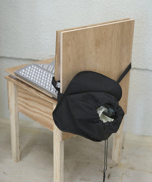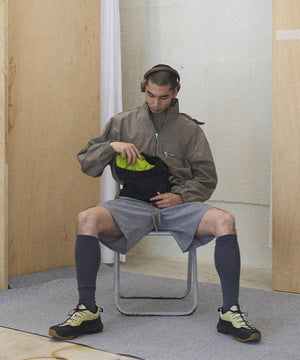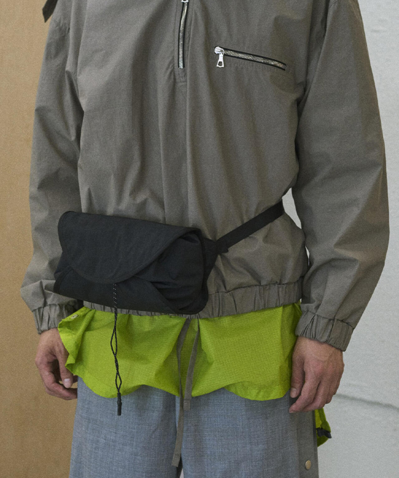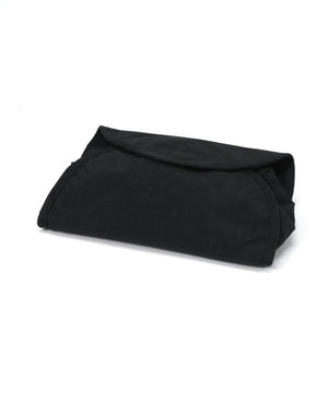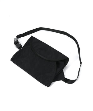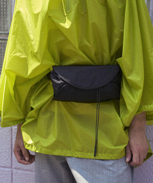 巻くをコンセプトに設計されたウェストポーチ。収納するアイテムを包み込む。容量は2Lと500mlのペットボトルを収納しても余裕があるサイズで、インナーには小物を収納するためのメッシュポケットを配置。アウターポケットはスマートフォンを収納できるサイズでキーホルダーが付属しています。テープ末端のリフレクターテープもポイントになっています。