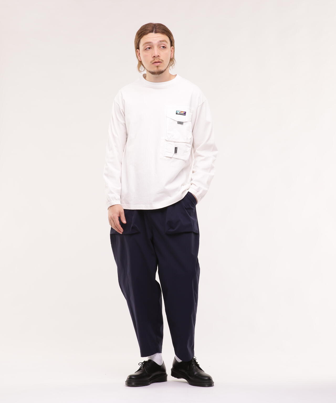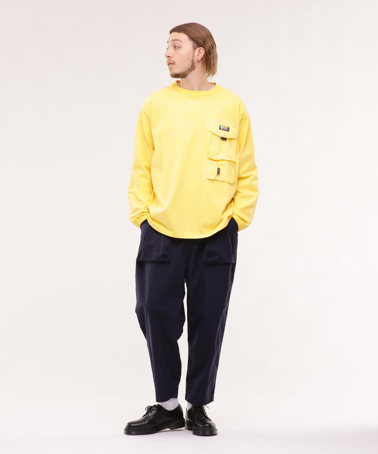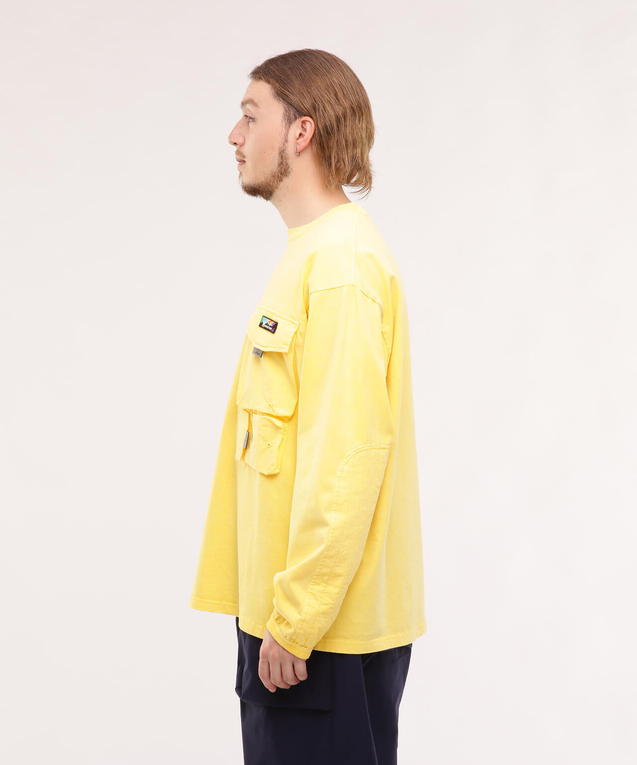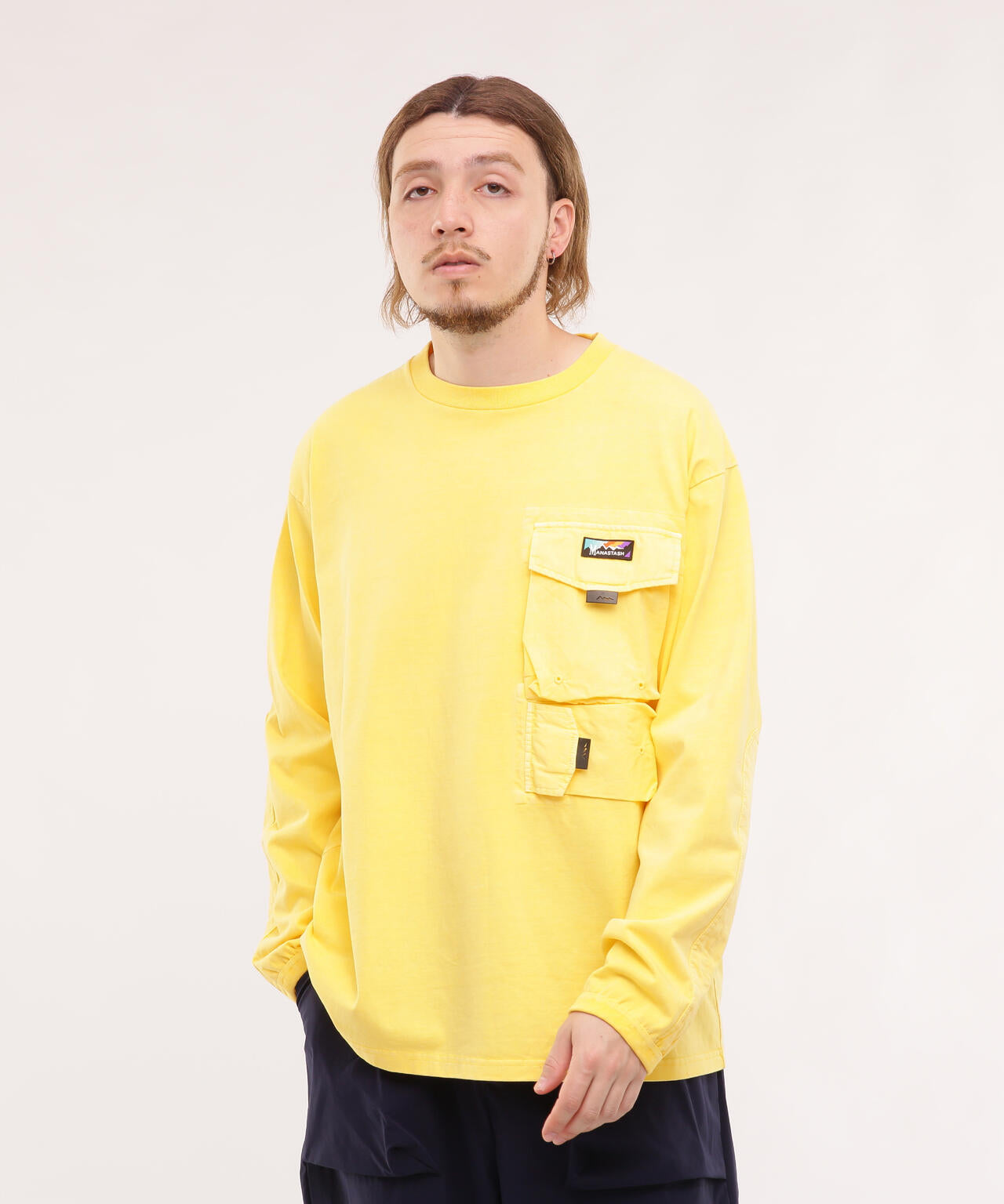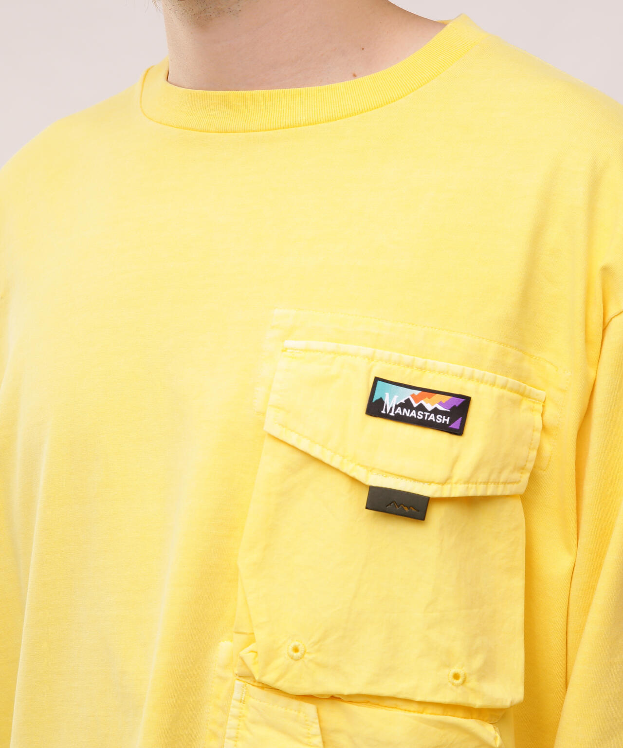 毎シーズン人気の製品加工Tシャツ。23 Ver. はベローズポケットにプラスチックタブを加えた2000年代のアウトドア仕様です。スケート、バイク、モーターバイクなど、その他アクティビティーにピッタリなカットソー。