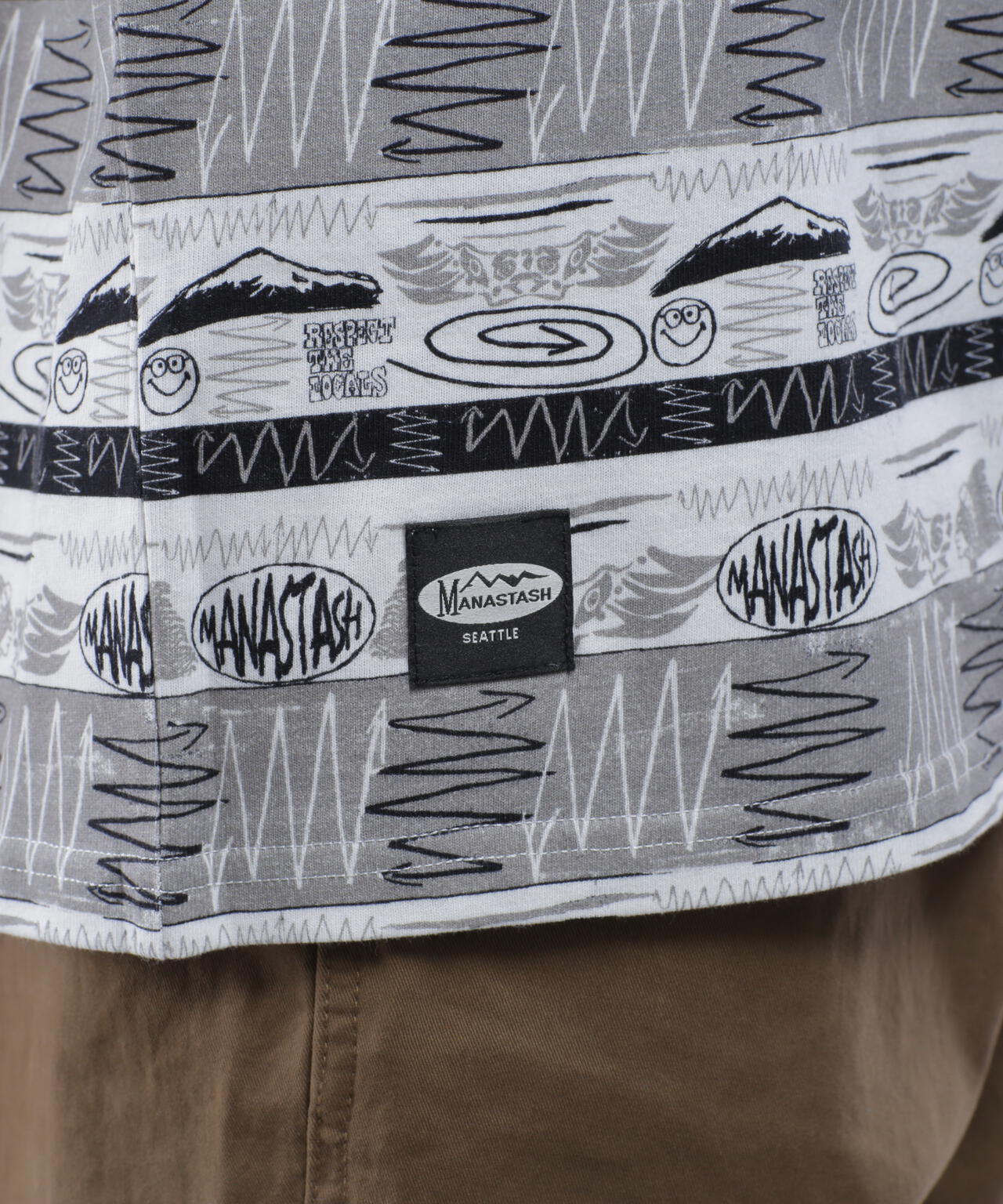・MANASTASHの創業の地であるシアトルとその周辺を思い起こさせるようなモチーフを並べ、それをボーダーにした1枚。