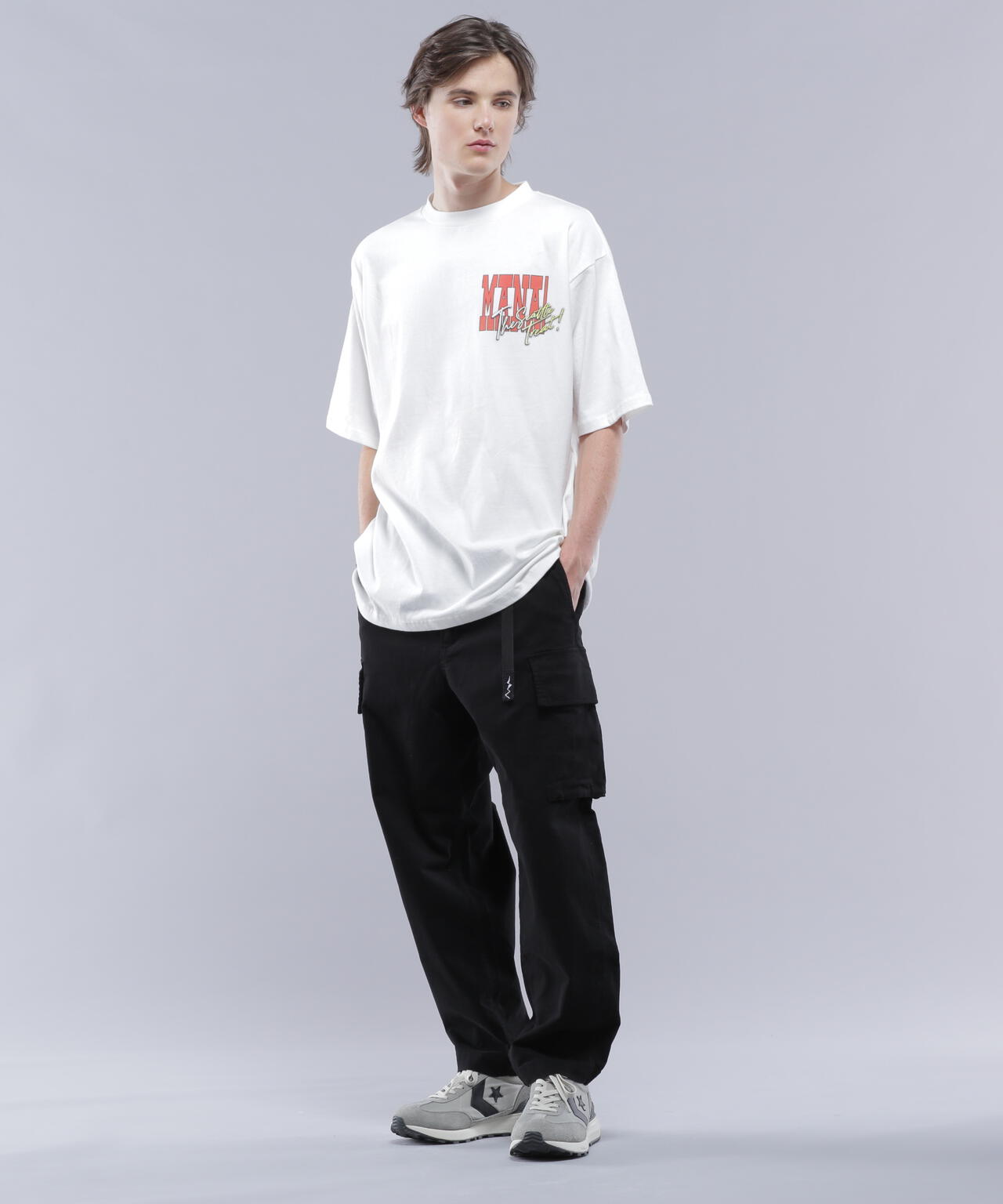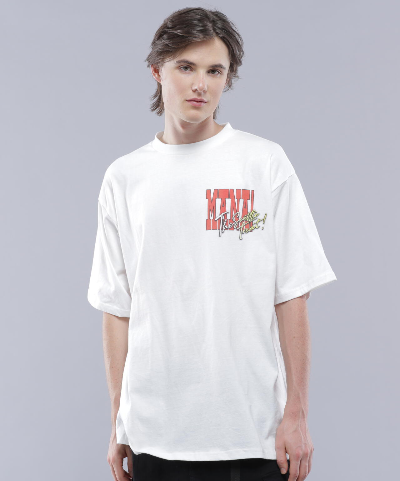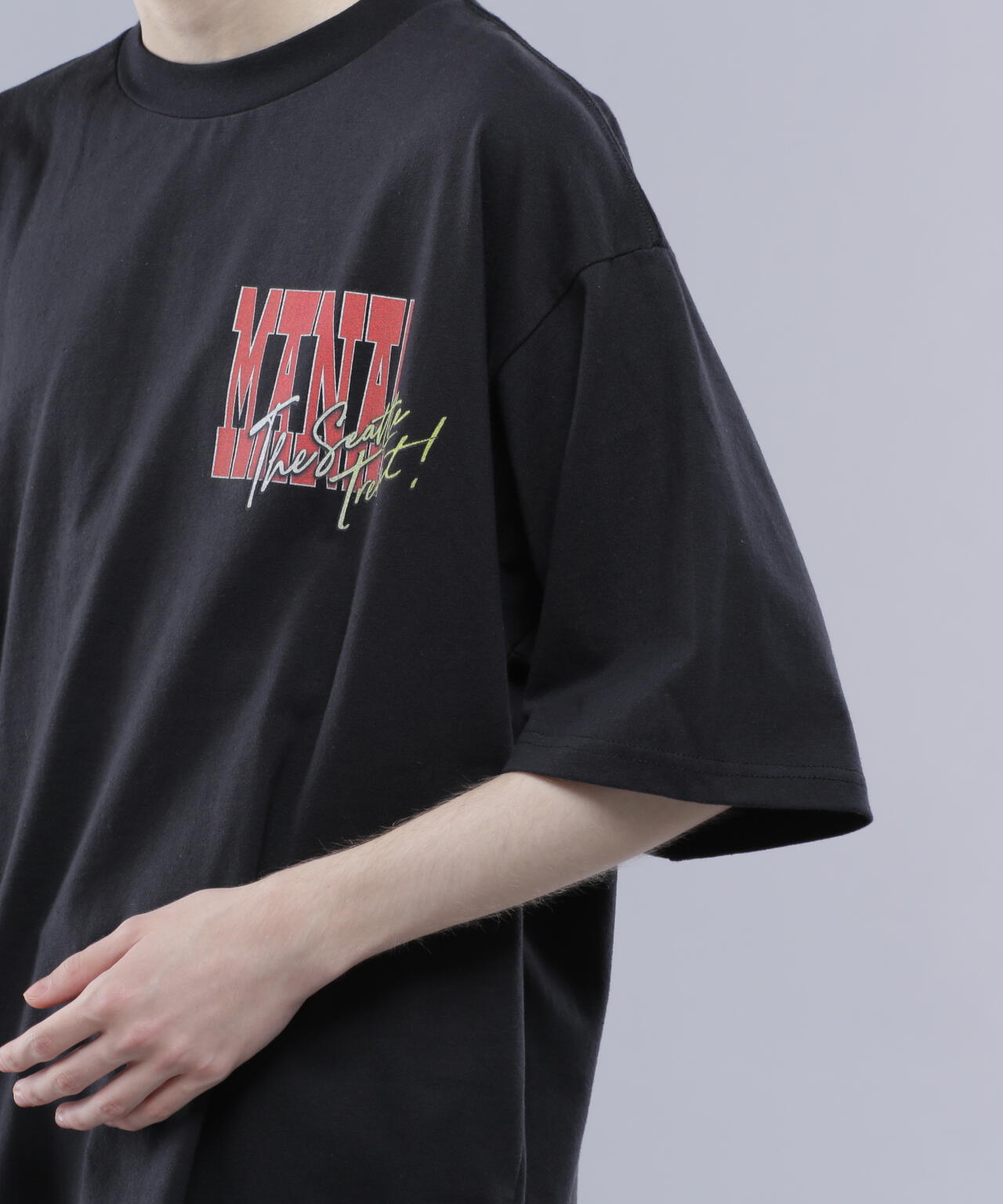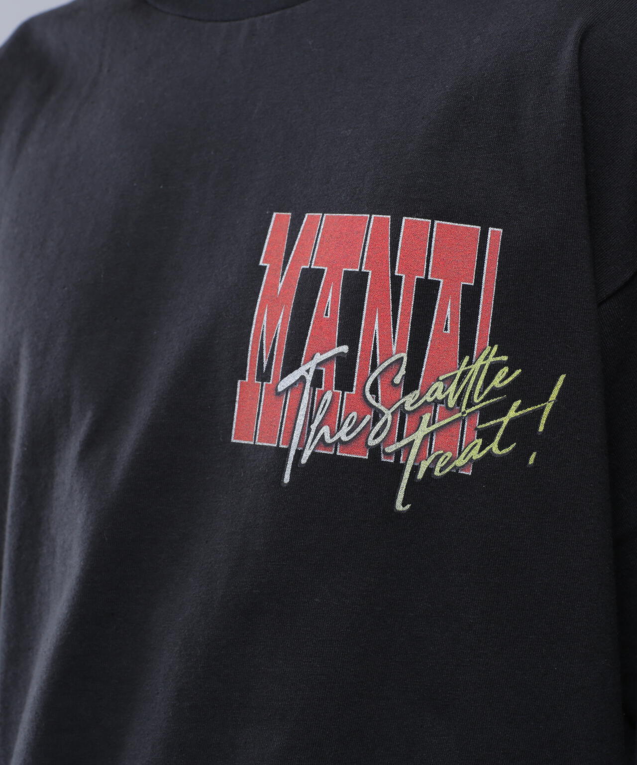 ・胸+背中の王道のレイアウトなので、1枚で着れるシーズンに映える1枚ですが、胸のプリントが大き目なので、シャツやアウターを前開きで着た際にチラっと見せるのもお勧めです。