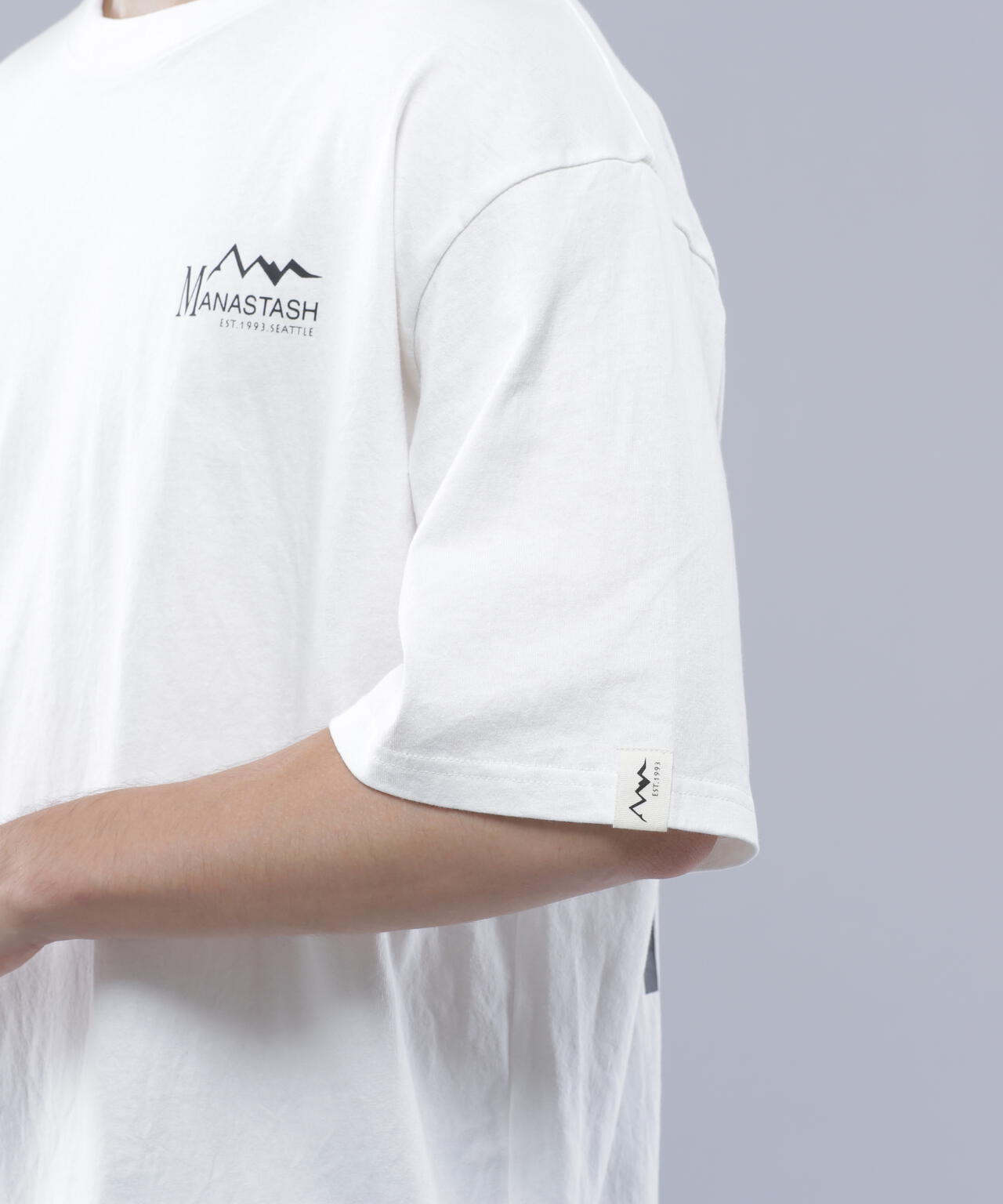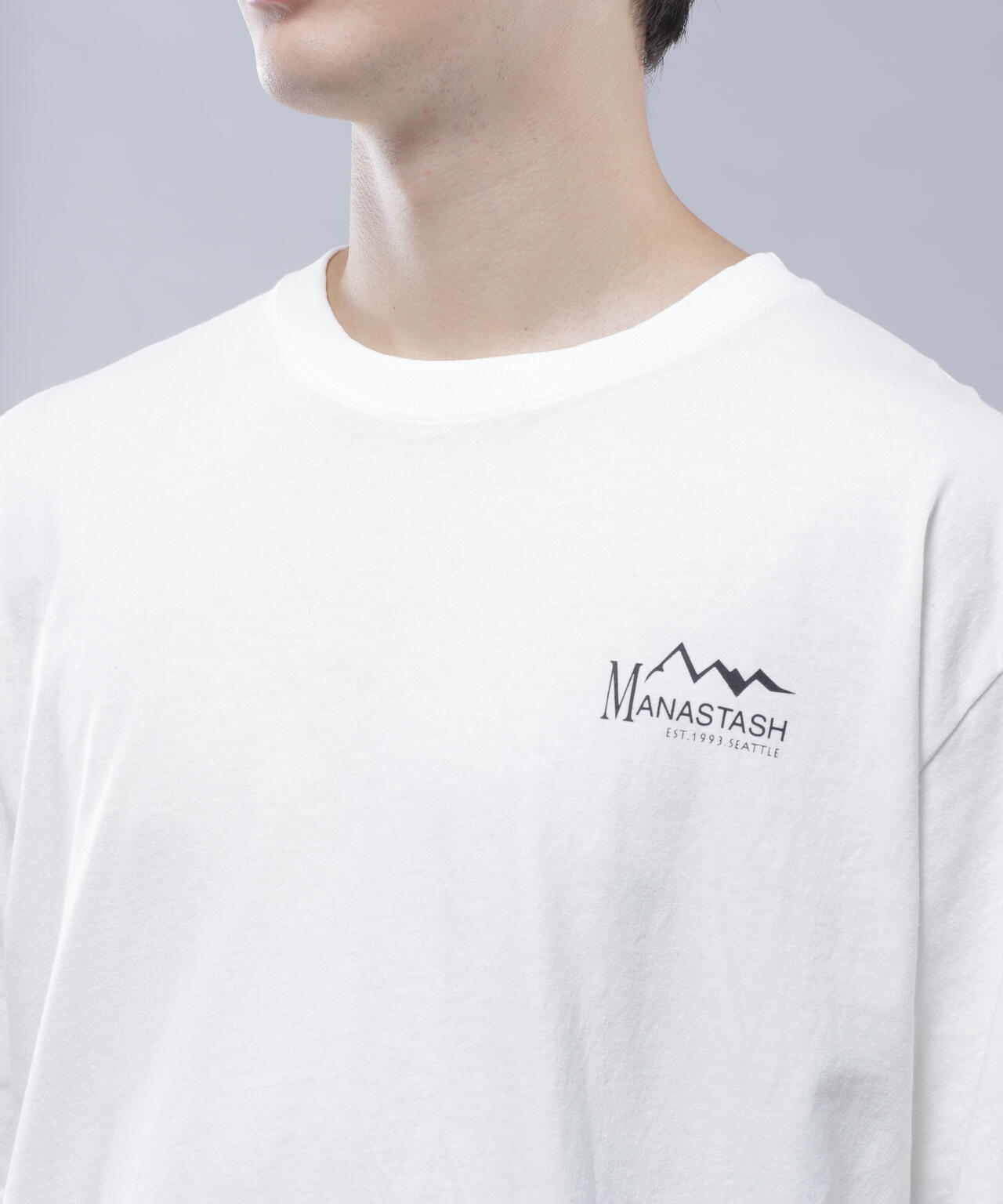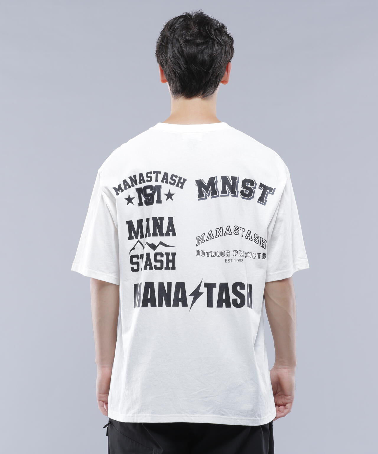 ・フロントには左胸にMANASTASHロゴがシンプルに入り、背中はスポーツの大会等で見られるスポンサーロゴが入った仕様で、様々なMANASTASHロゴが配置されている
