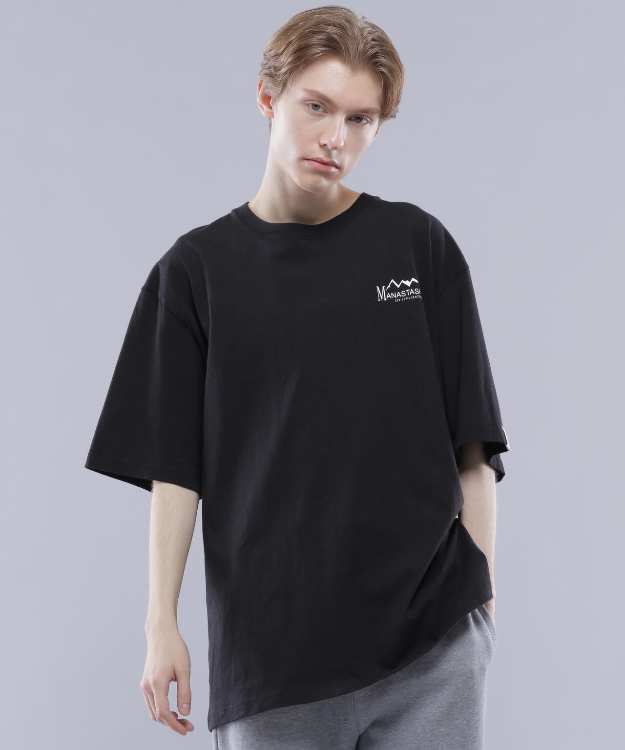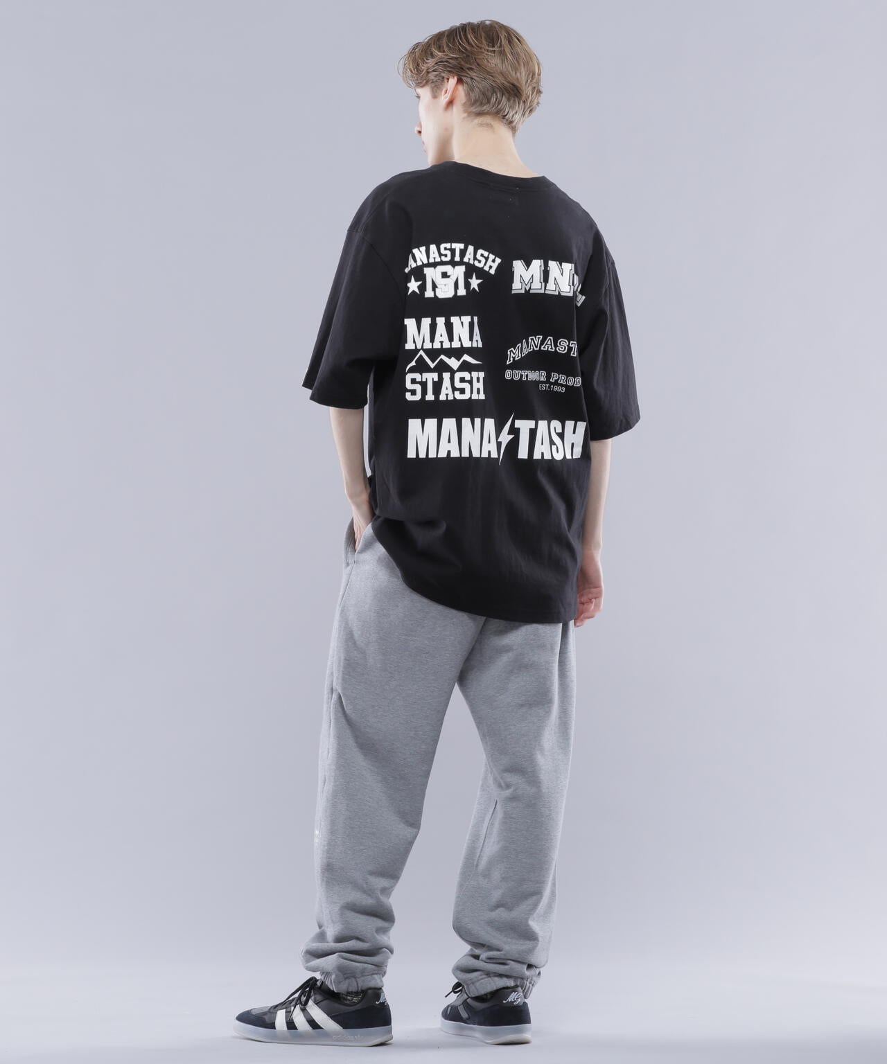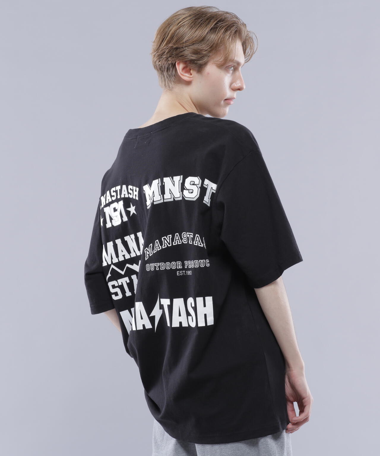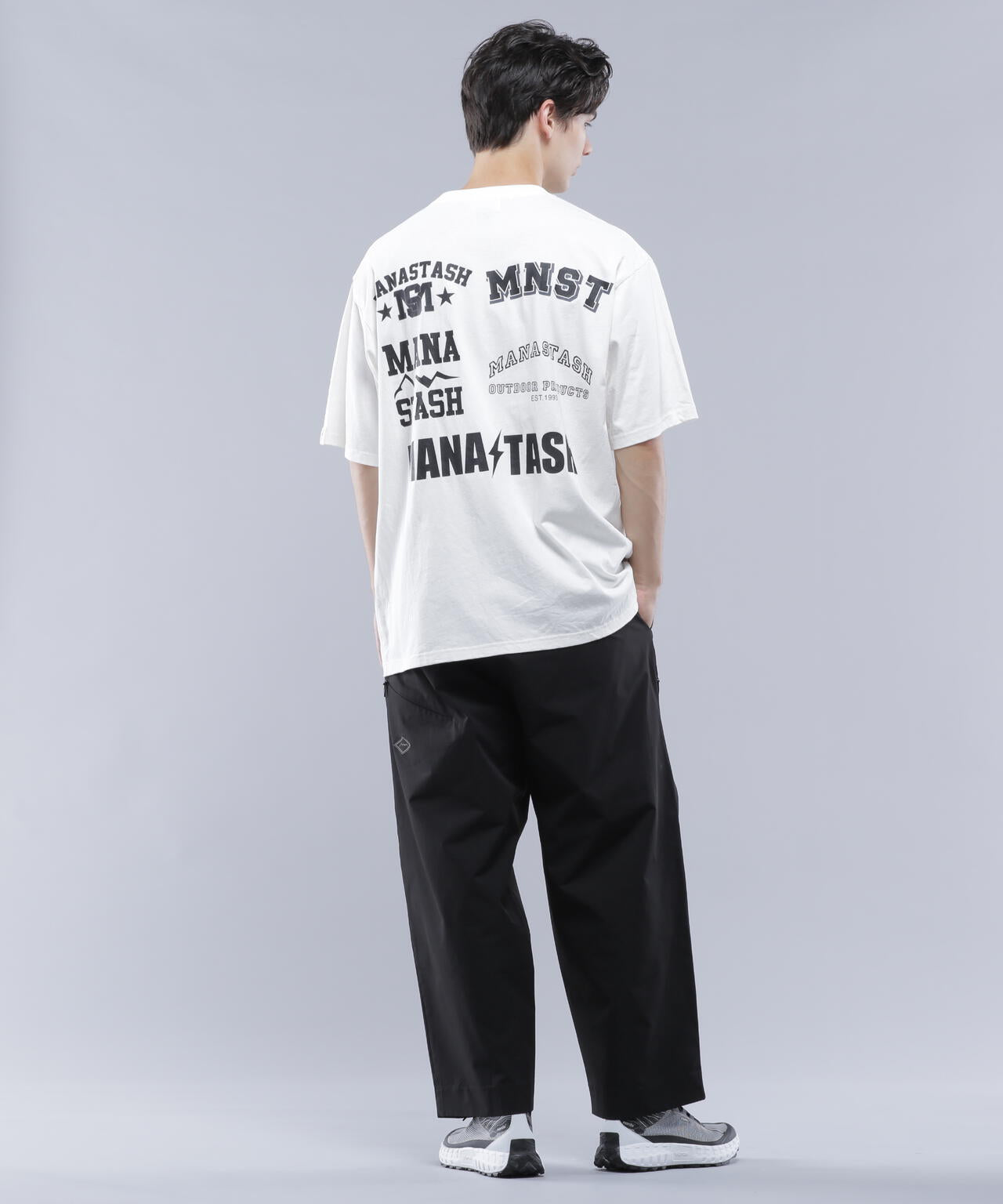 ・フロントには左胸にMANASTASHロゴがシンプルに入り、背中はスポーツの大会等で見られるスポンサーロゴが入った仕様で、様々なMANASTASHロゴが配置されている