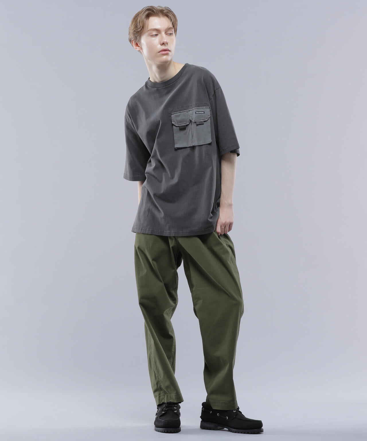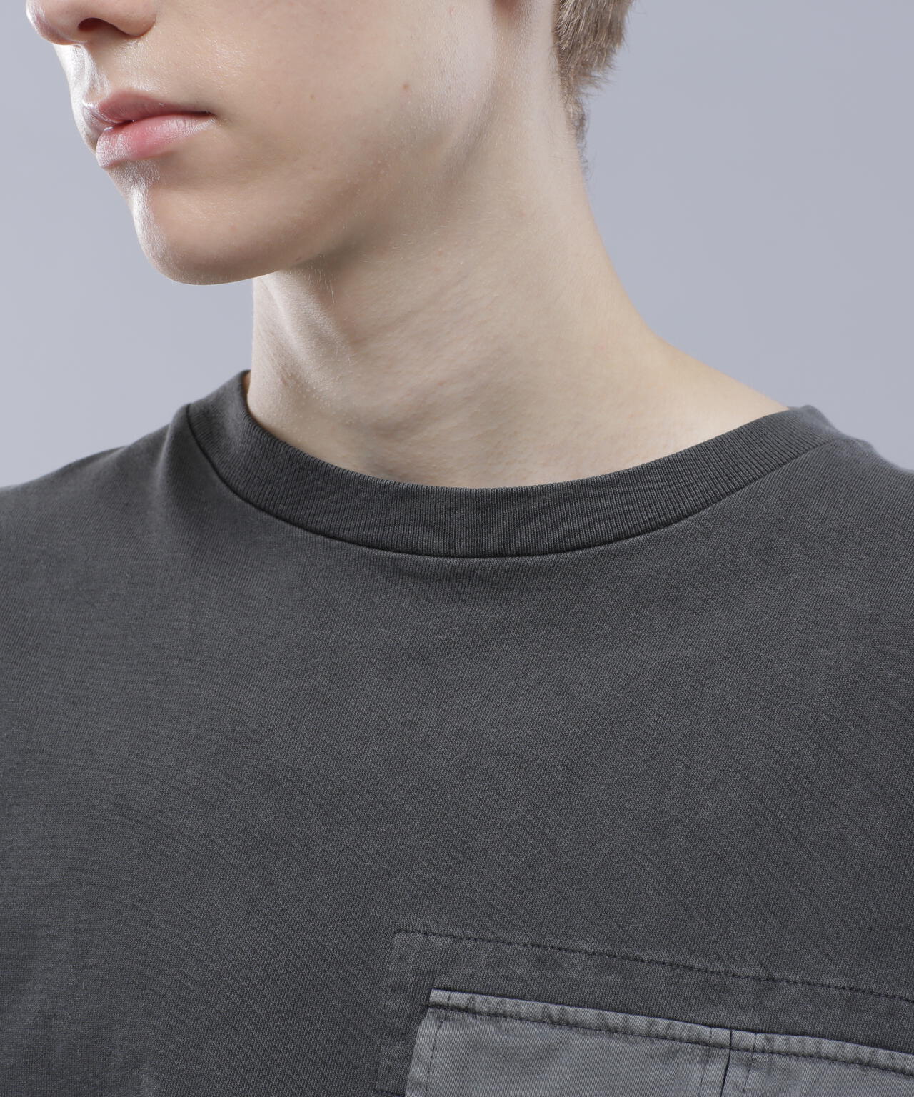 ・定番的に展開している、布帛のポケットが特徴的なカットソー