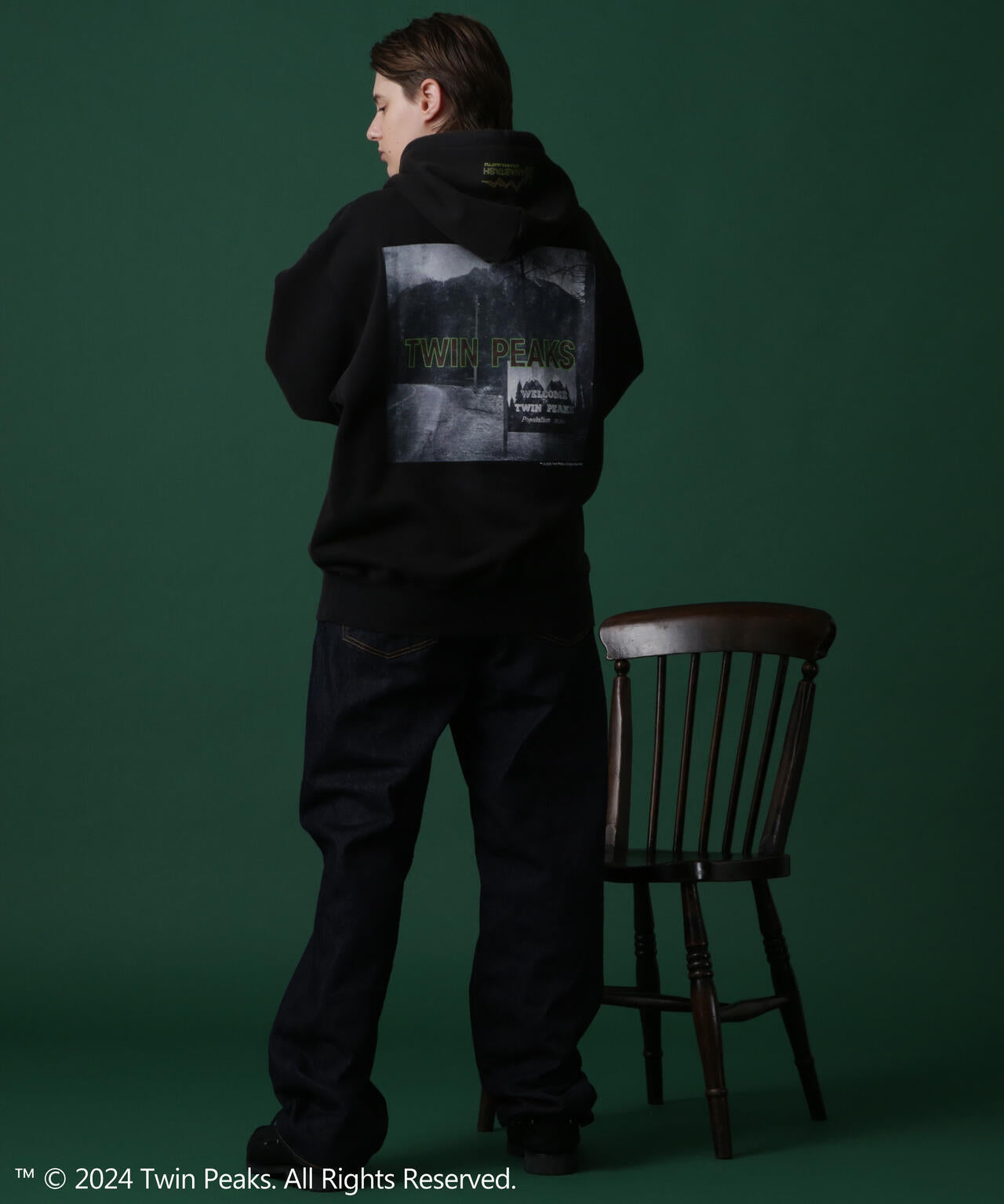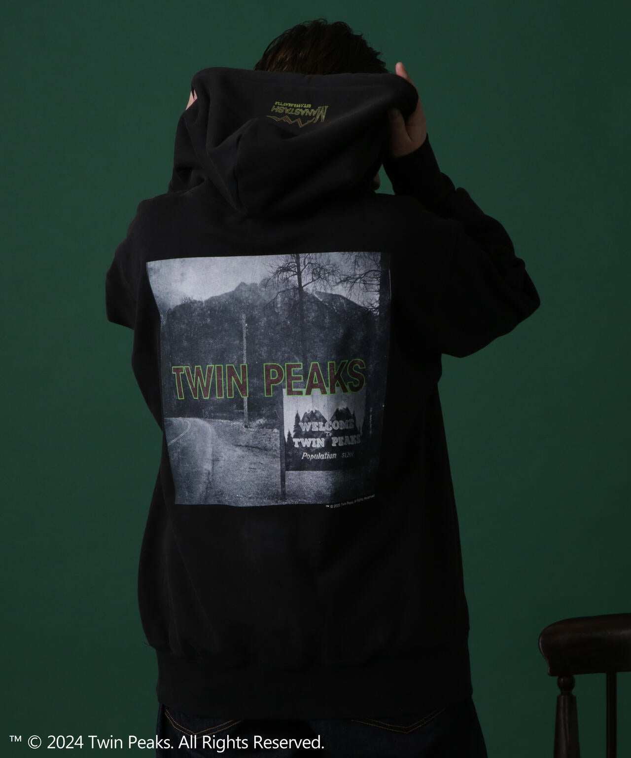 ・背中にはTWIN PEAKSのオープニング時に流れるシーンのフォトプリントが入る。