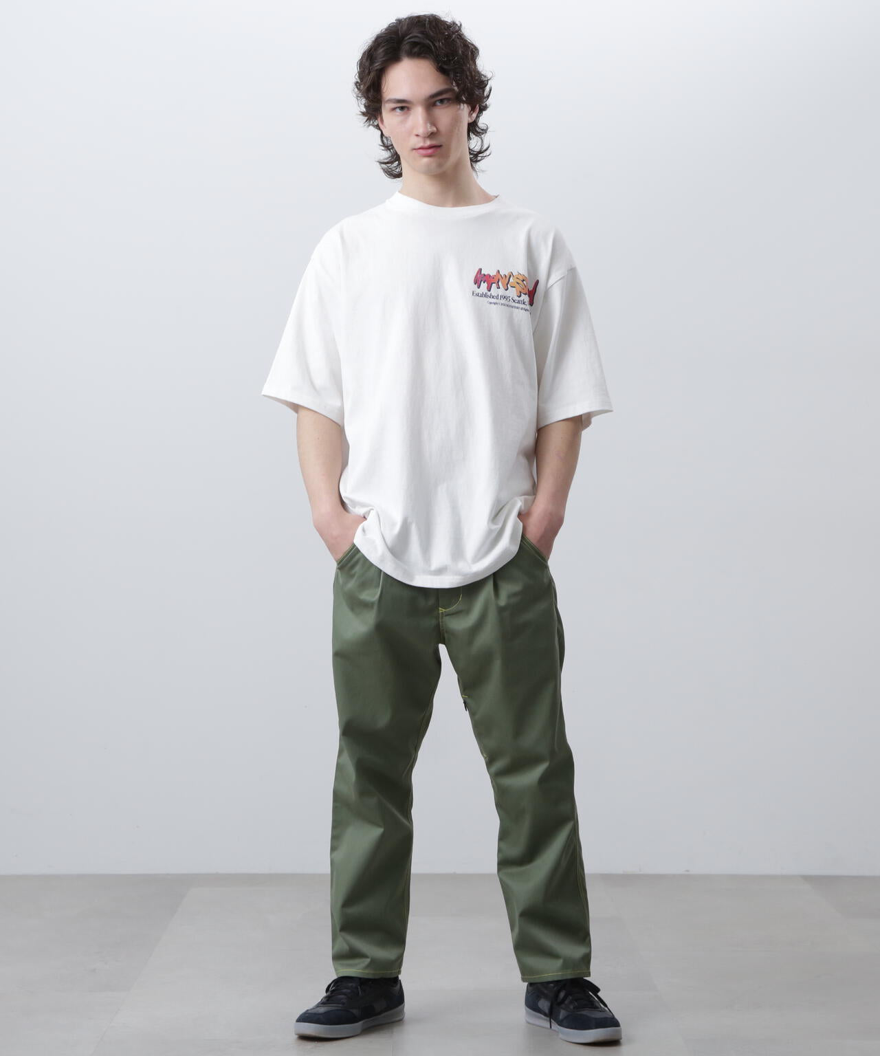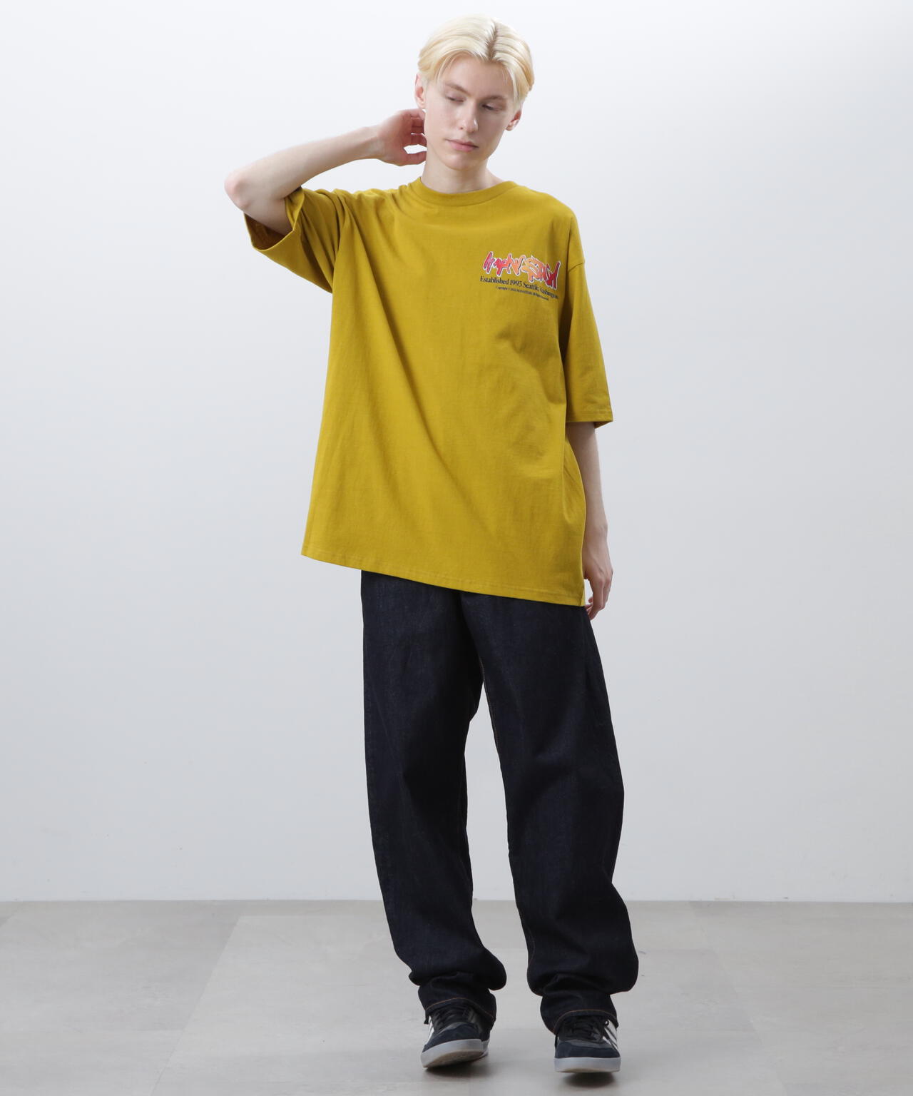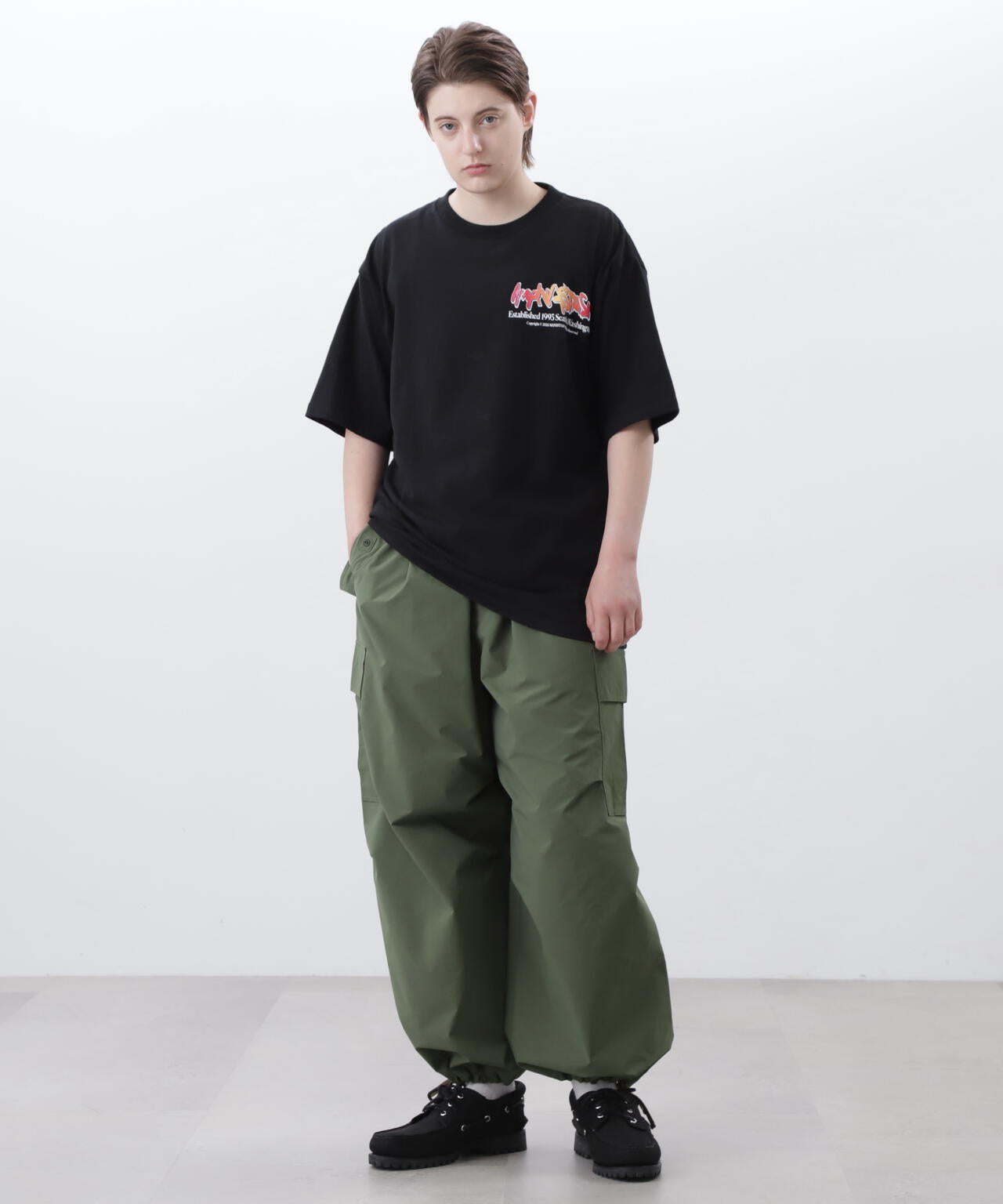 ・インパクトのあるロゴが印象的なTシャツなので他のアイテムをシンプルにすることでより映えます。