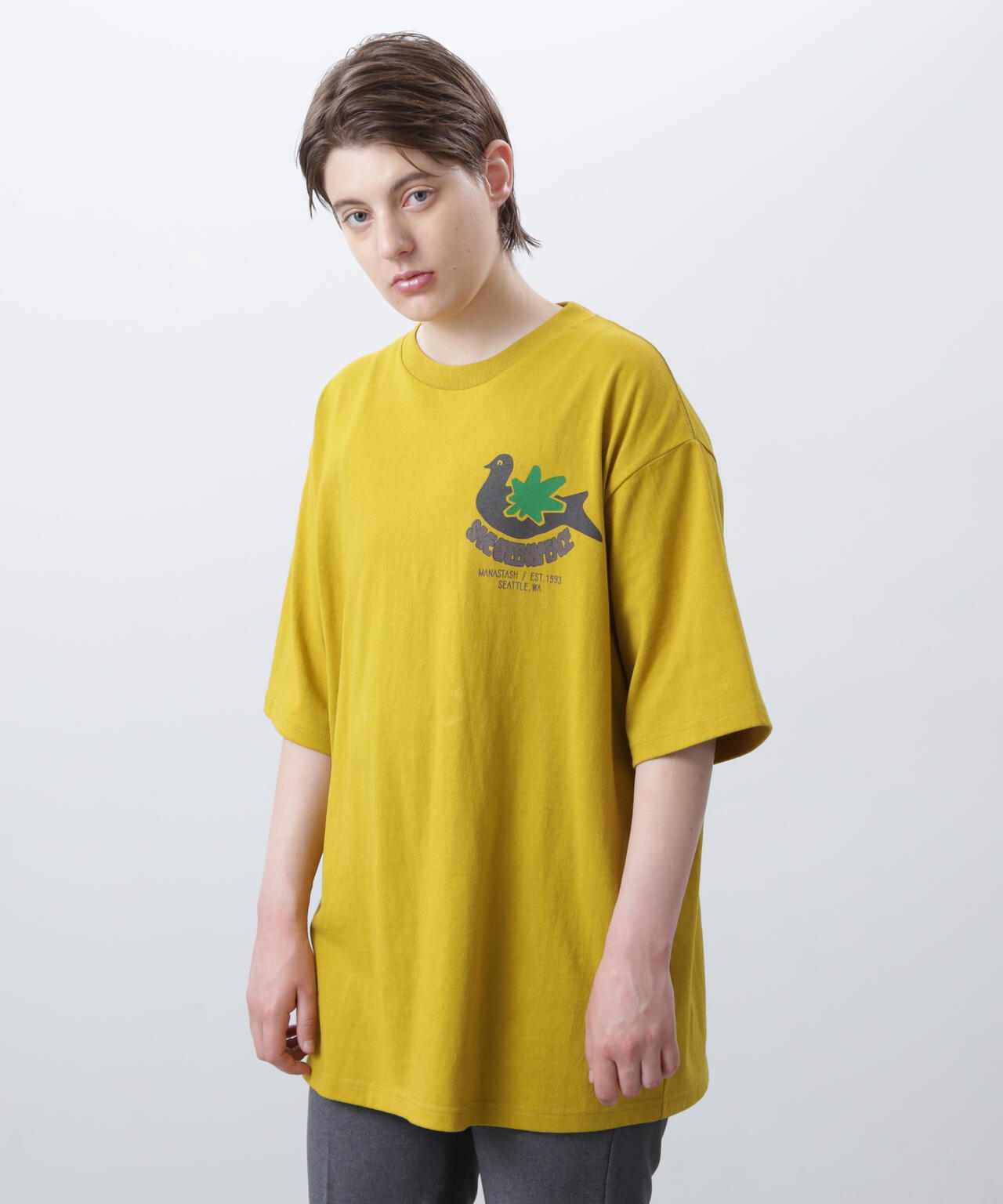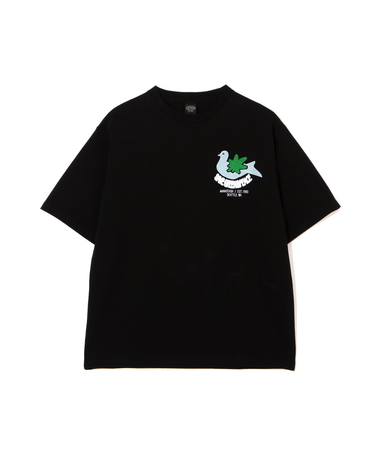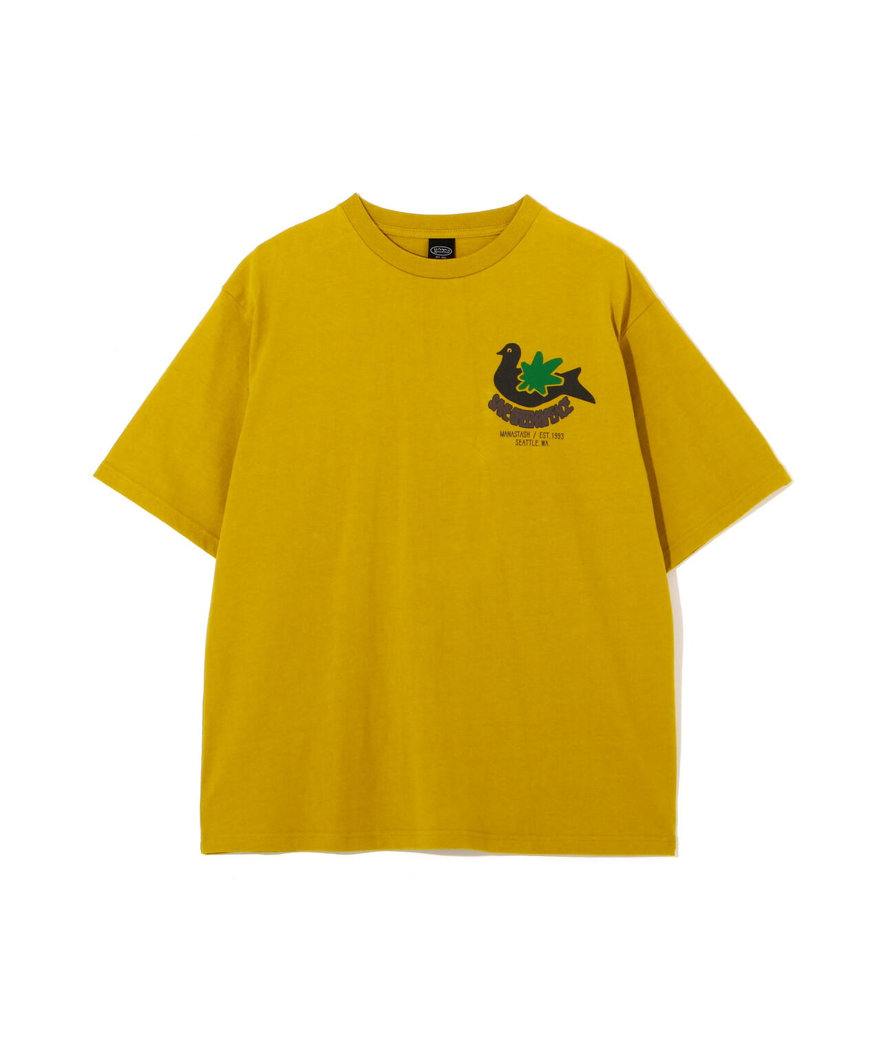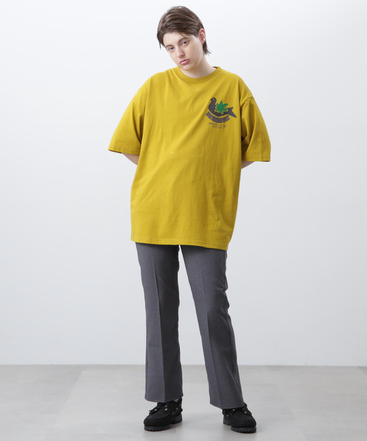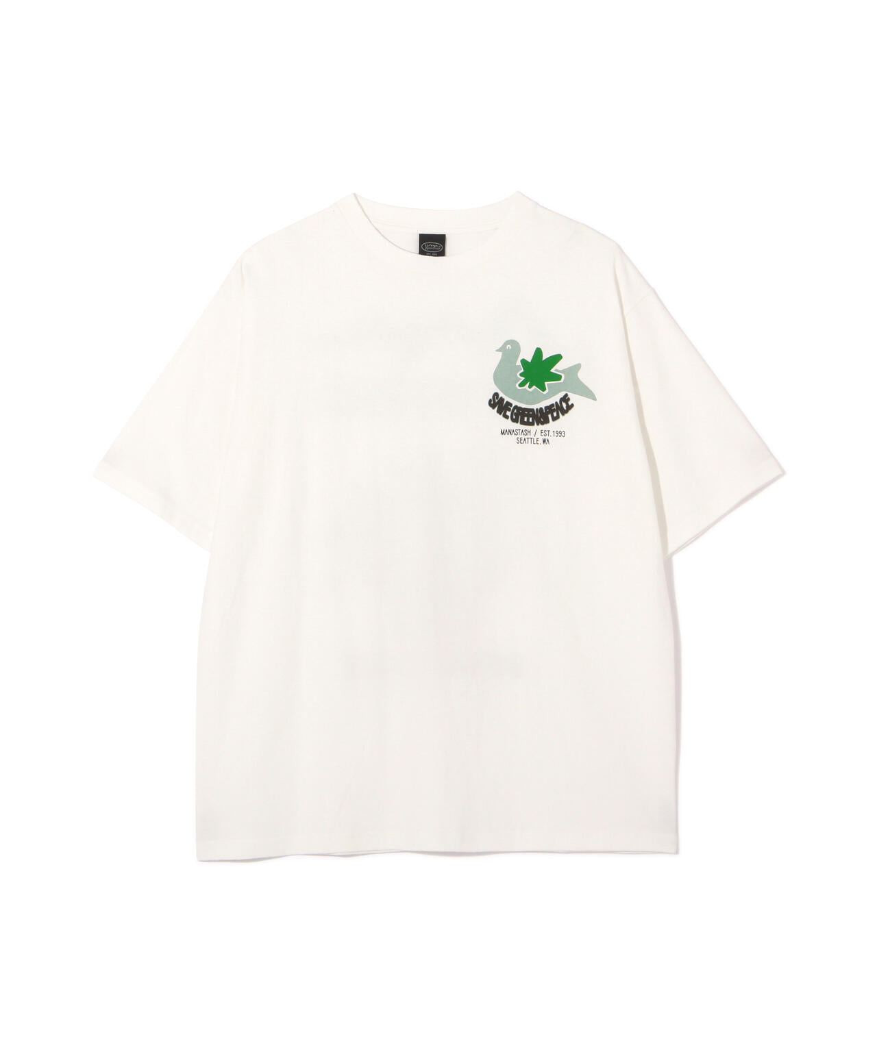 ・品名の通り、ハト(=PIGION)をメインに【SAVE GREEN&PEACE】というメッセージが入った、手書き調の温かみのあるグラフィック。