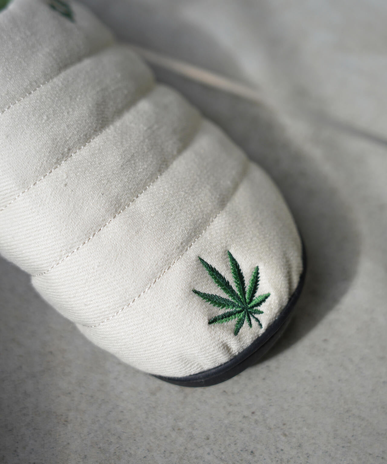 ブランドのアイコンであるHEMPの葉をアッパーに刺しゅうで入れたスペシャルコラボアイテム。