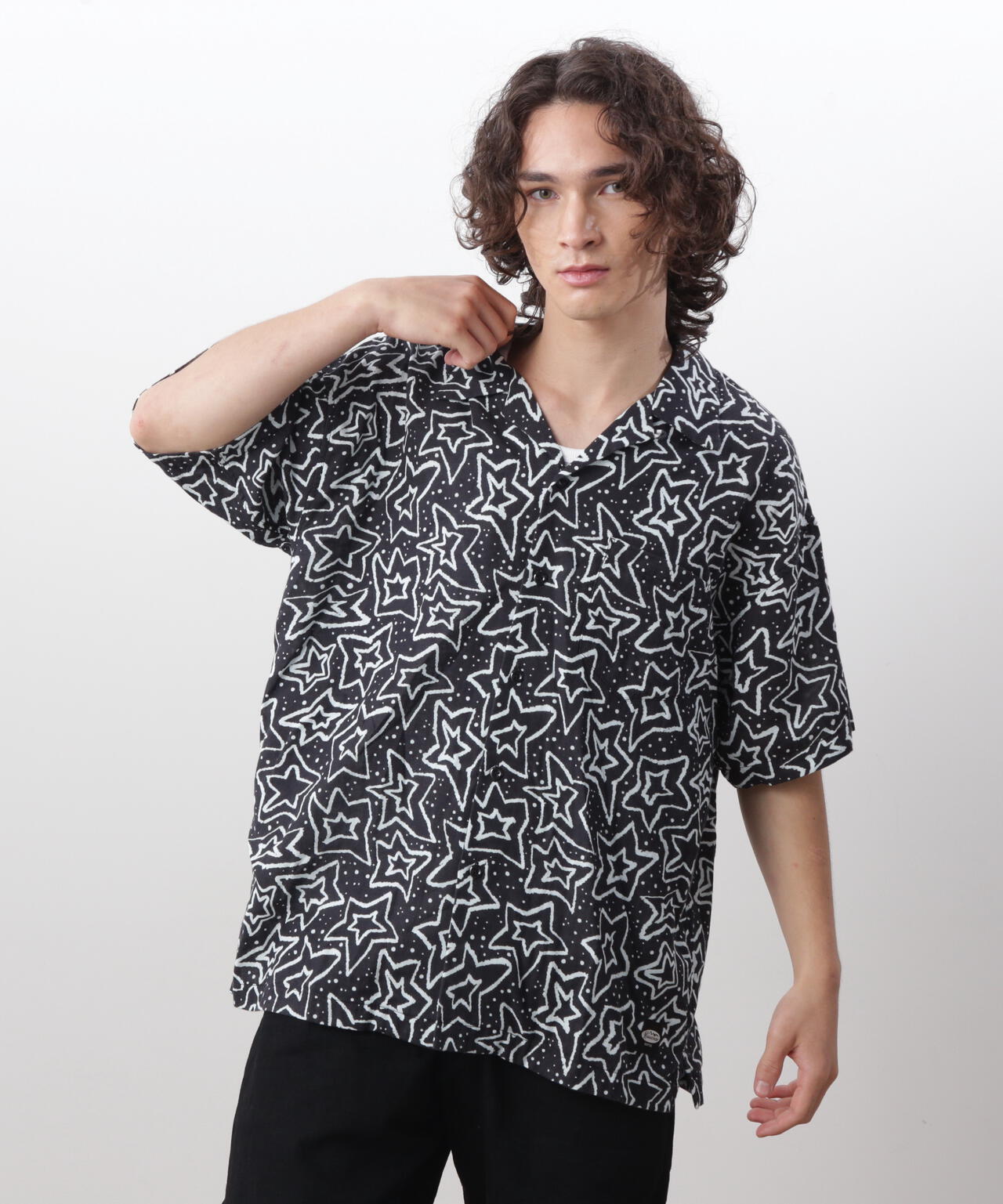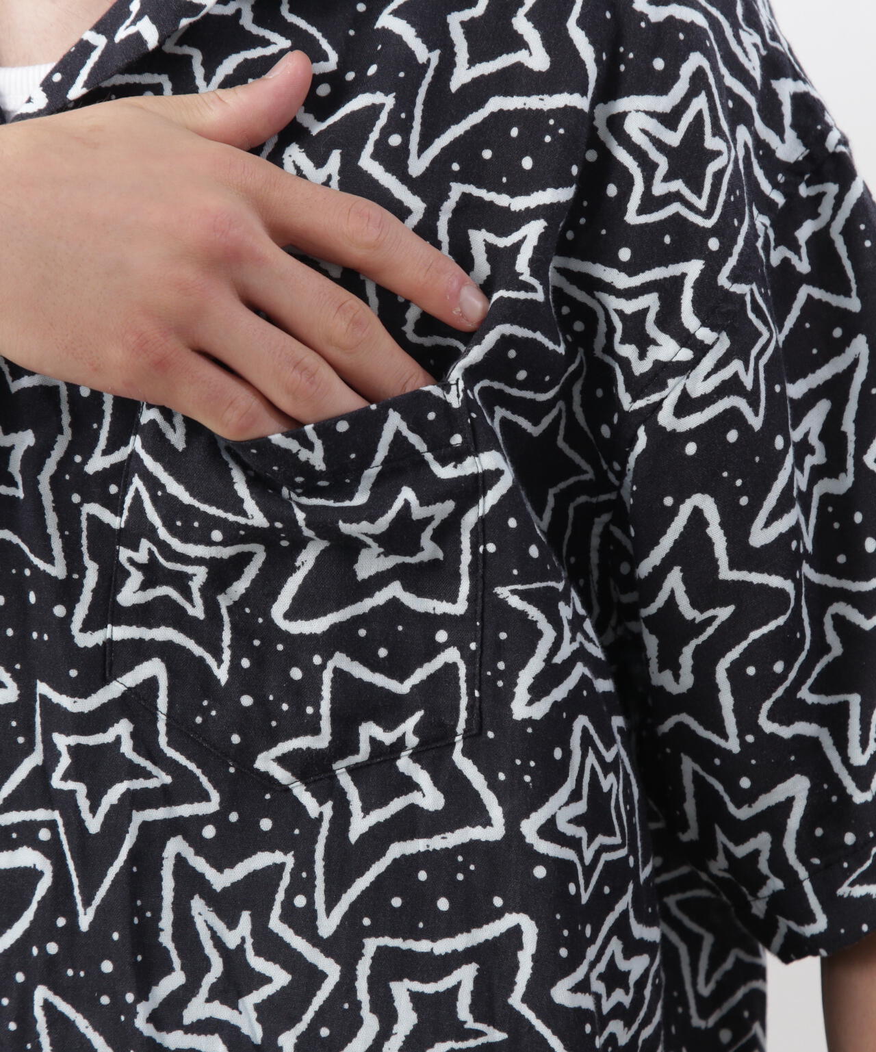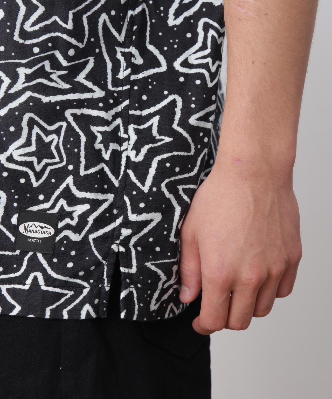・星柄、MANASTASHの文字をそれぞれ、ポップアート調に落とし込んだ総柄のプリント