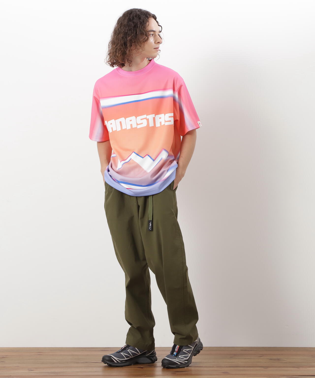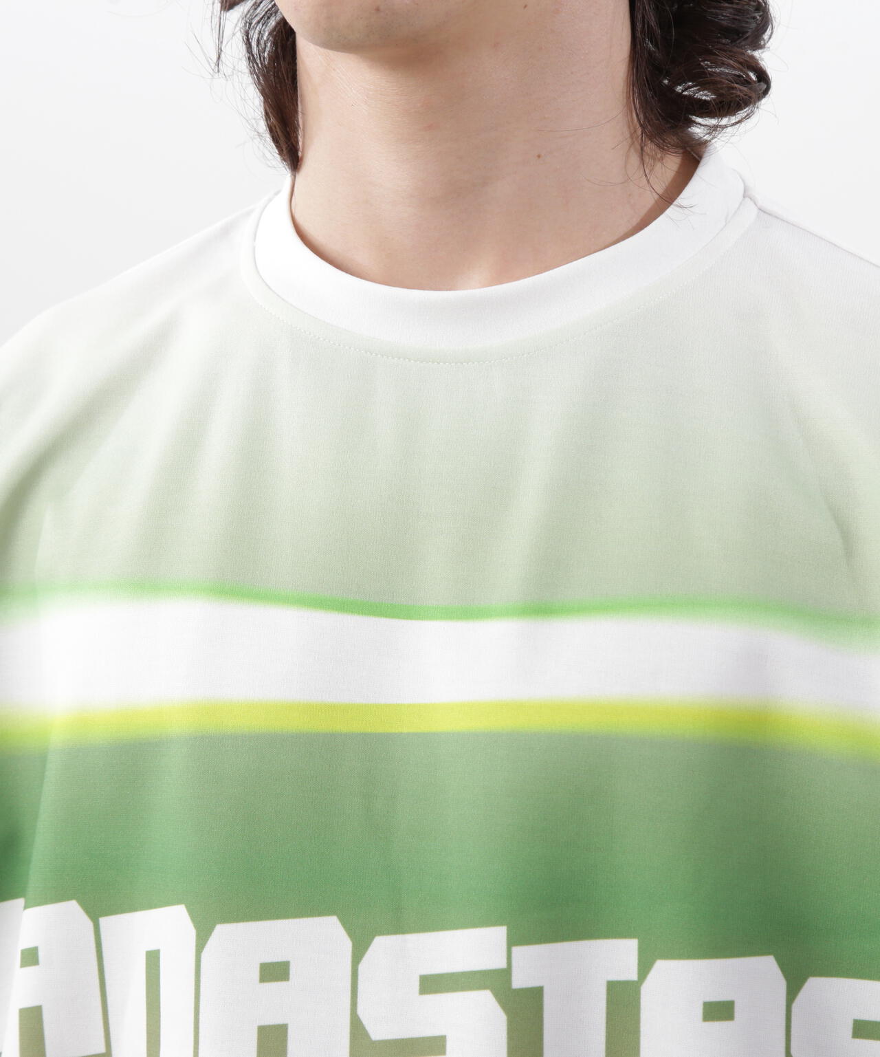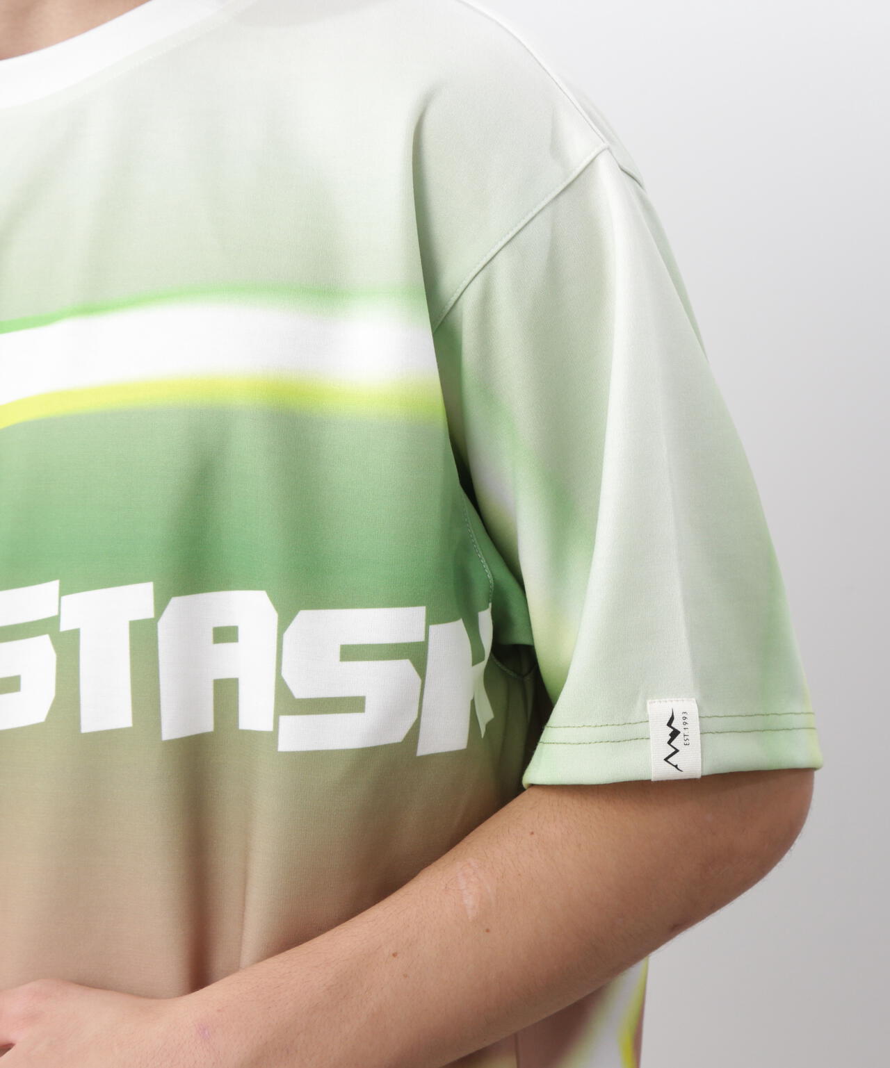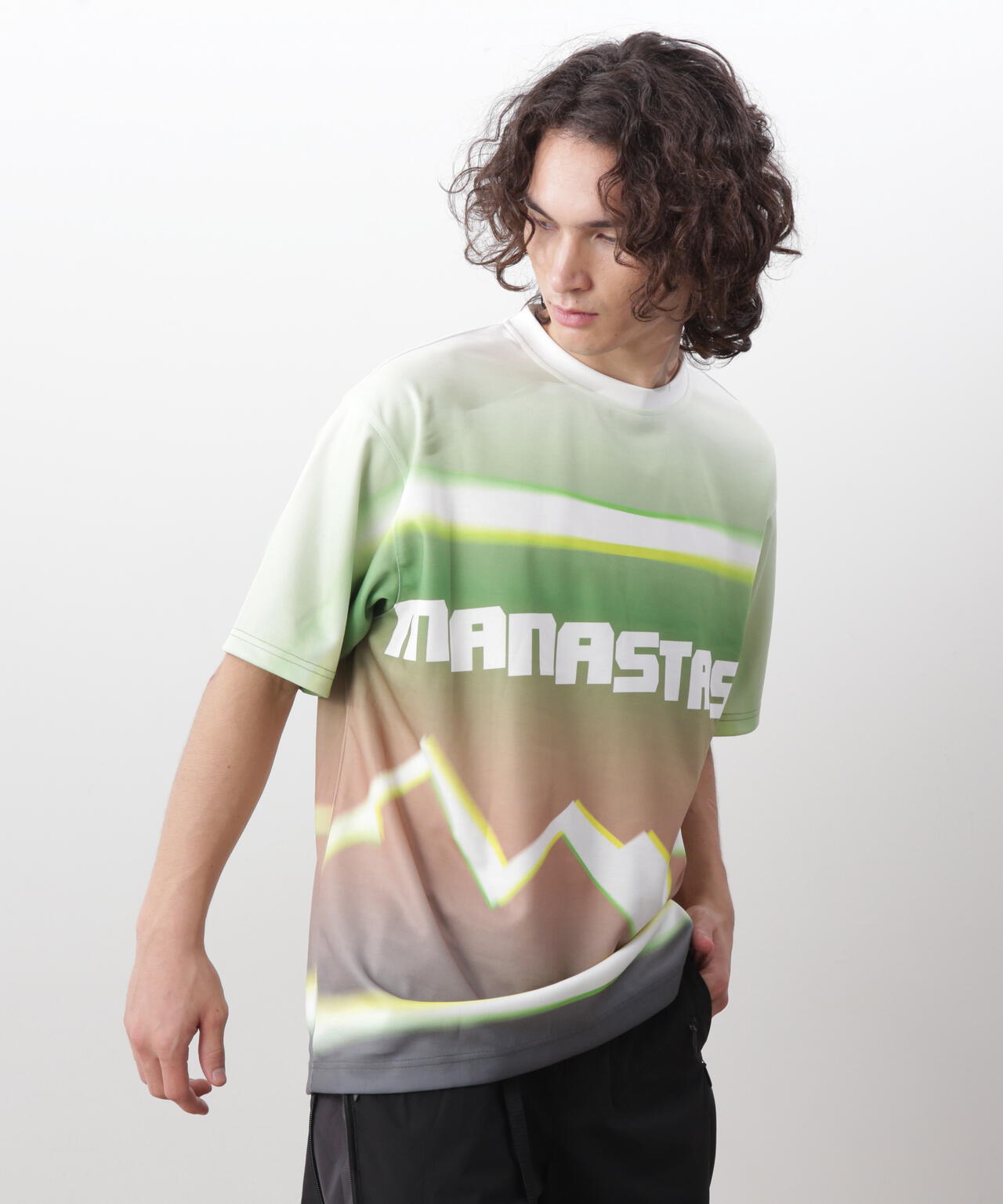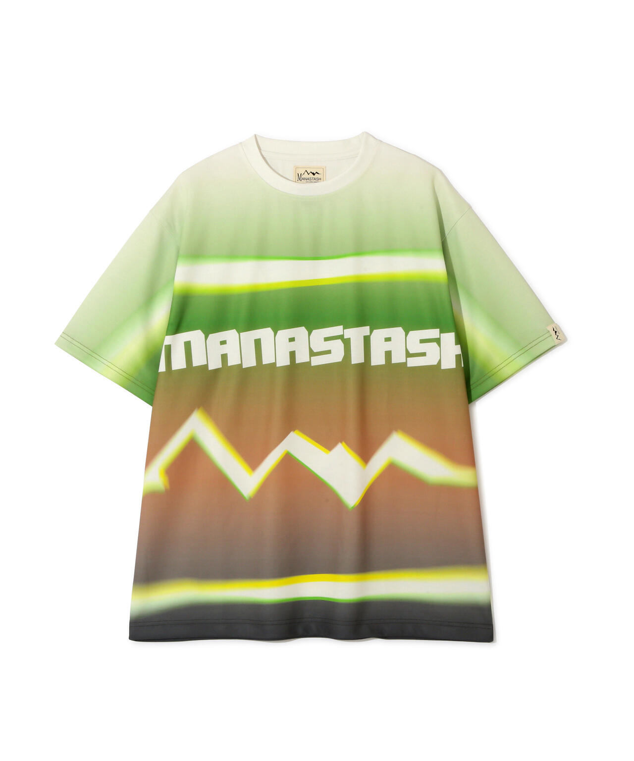 ・ボディ全体で、グラデーションとMANASTASHロゴを落とし込んだTシャツ