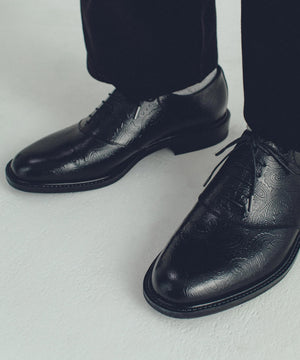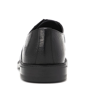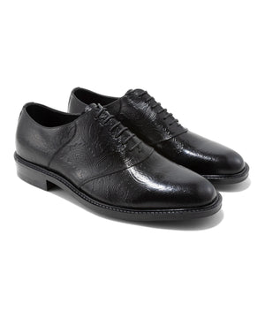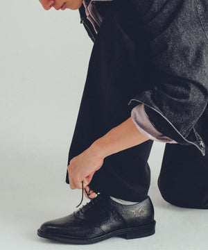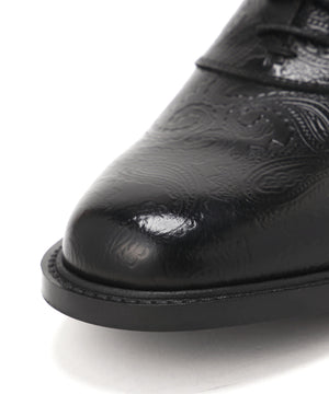ブランドが誕生した1986年の1stコレクションにラインアップされていたアーカイブを活用し、ローファー同様に既存の日本製革靴にはない要素を加え発信をするヒモ靴の第一弾。踵下と土踏まずをサポートするクッションインソールを採用し、履き始めからストレスを感じにくい、日常使いに最適なスペックを備えています。ブランドの象徴であるペイズリー柄の型押しレザーを大胆に全面に配した、インパクトのある一足です。