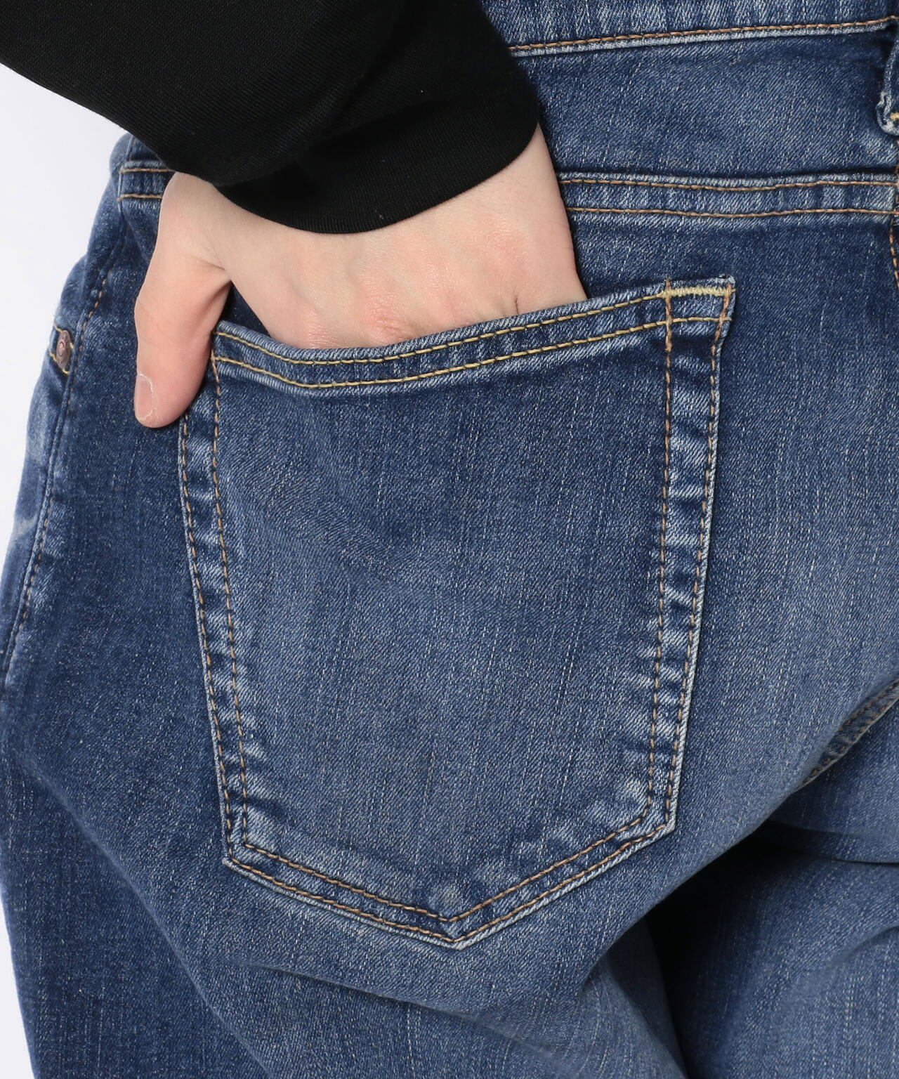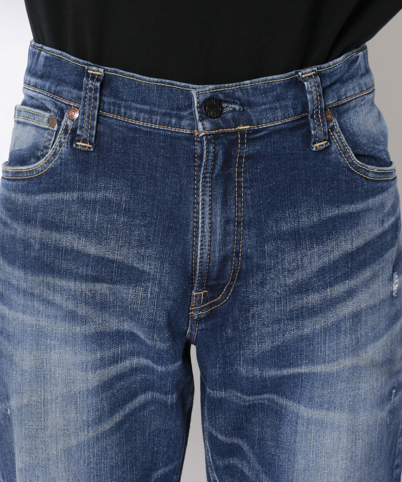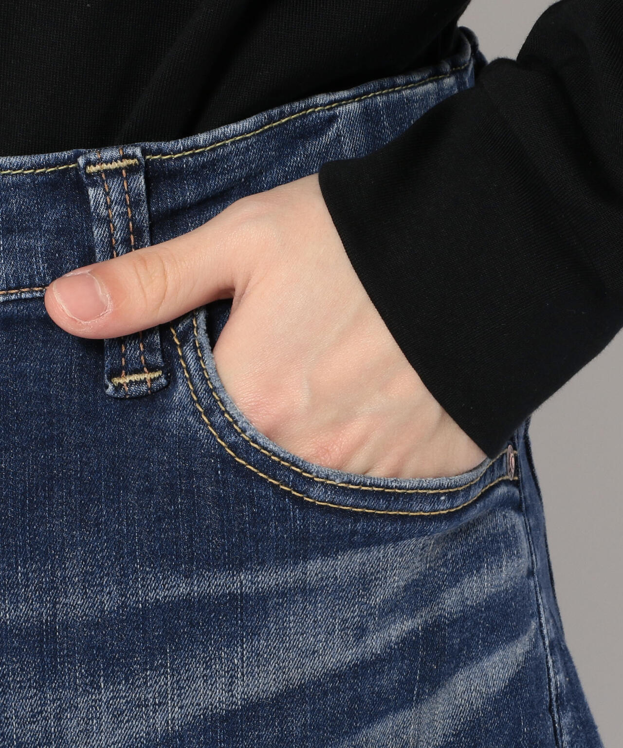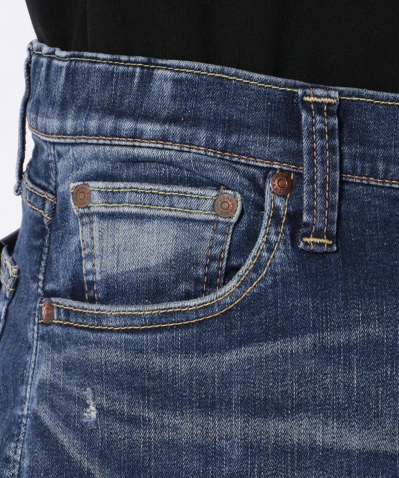他社の素材との最大の違いは戻る(キックバックする)力です。一般的に伸びるだけの素材なら他にもあるのですが、ここまで元通りに戻る力を持ったデニムはISKOの特許でしか実現出来ません。この素材をBIGJOHNが特注してリアルユーズドが表現できる素材として別注しています。