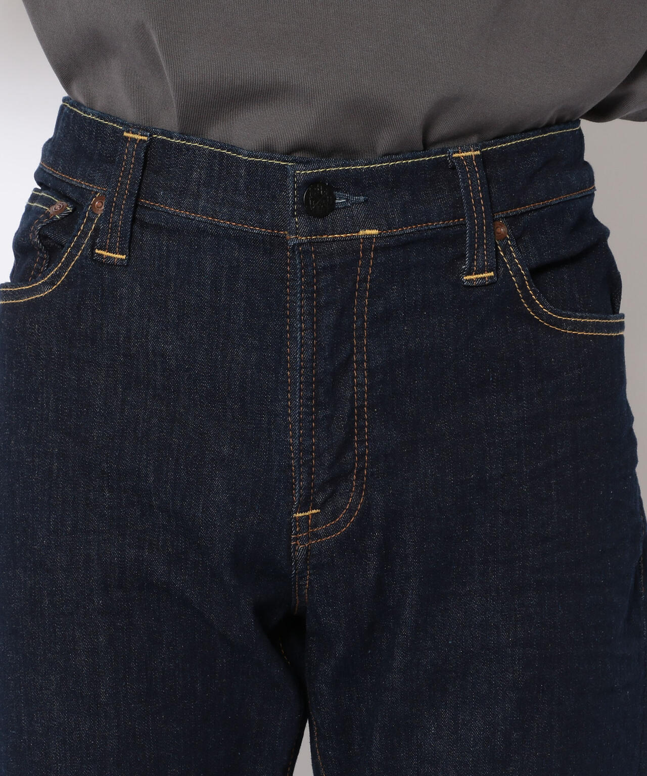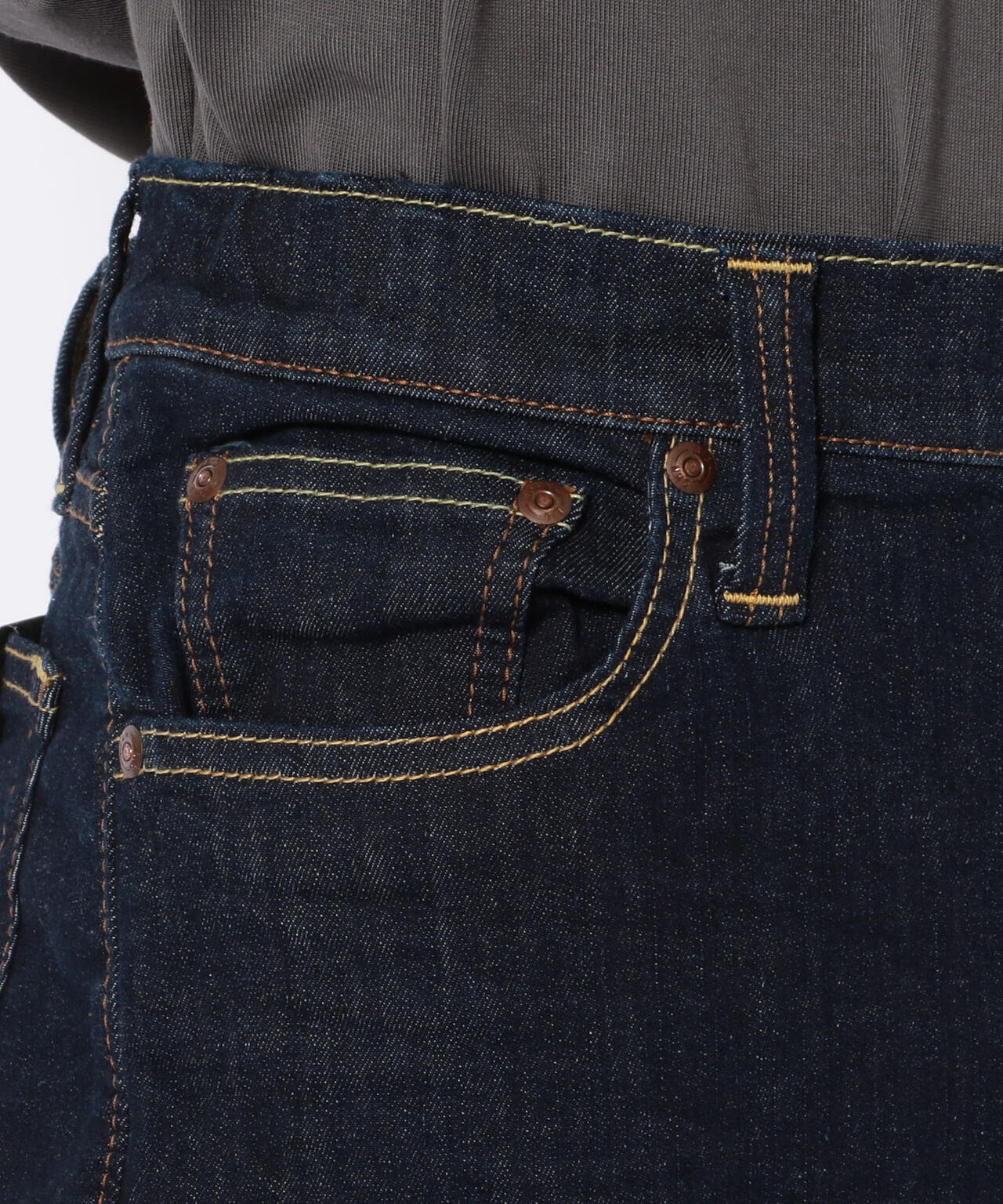 他社の素材との最大の違いは戻る(キックバックする)力です。一般的に伸びるだけの素材なら他にもあるのですが、ここまで元通りに戻る力を持ったデニムはISKOの特許でしか実現出来ません。この素材をBIGJOHNが特注してリアルユーズドが表現できる素材として別注しています。