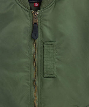 ・MA-1 スリムフィットからのアップデート:酸素タブ、ワイヤータブ、ウェルトポケット、袖のプリント、同系色の裏地