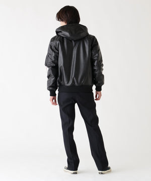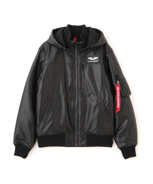 FAUX LEATHER HOODED RIB FLIGHT JACKET