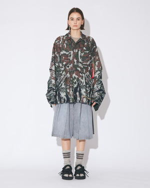 ・WOODLAND CAMOからTIGER CAMOへと変化するユニークなプリント・アイテムのパターンとリンクした斜めに変化する柄域が特徴・ストーンウォッシュ加工