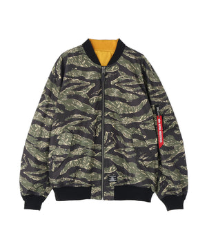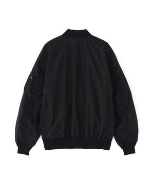 オーバーサイズのゆったりとしたシルエットに、リブ編みの襟・袖口・裾、さらに袖口のALPHAユーティリティポケットなど、フライトジャケットの伝統的なディテールを丁寧に踏襲。