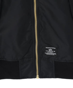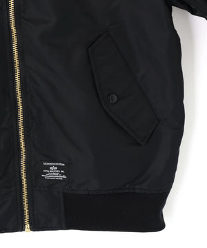 リブ編みの襟・袖口・裾や、袖口に配されたALPHAを象徴するユーティリティポケットなど、フライトジャケットならではのクラシックなディテールを踏襲。